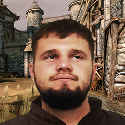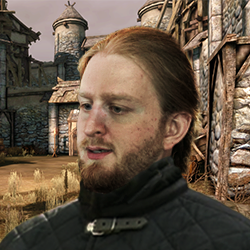 Mladý rekrut, člověk; jeho chování vykazuje znaky vojenského výcviku a hluboko vštípené disciplíny. Na zádech nosí templářský štít a zbytek jeho vybavení také nasvědčuje tomu, že patří nebo patřil k řádu. Prý od řádu odešel; víc se o tom bavit nechce a stáčí konverzaci jinam. Je společenský a s chlapy kolem se rád baví i zasměje. I přesto vypadá pořád lehce nervózní - zvlášť pokud kolem něj projde žena nebo elf. Chvílemi jako by se ztrácel v hlubokém zamyšlení, a často přitom nepřítomně pozoruje přítomné mágy. Ani tak ho ale neopouští všudypřítomná ostražitost, tak charakteristická pro církevní ochránce lidu.