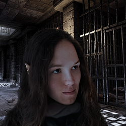 Tahle elfka je tu všechno jen ne dobrovolně. Několikrát se pokusila utéct a nakonec se jí to i podařilo - na chvíli. Zjevně má dobrý důvod, proč tu nechce být. Na první pohled působí křehce, ale zjevně vydrží víc, než se na ten první pohled zdá. Svoje okolí sleduje docela obezřetně. K elfům se chová o něco přirozeněji, ale ostatní jakoby podezřívala, že se na ni budou dívat skrz prsty kvůli jejím špičatým uším. Je to ale ona, kdo má nejvíc blbých keců směrem k Šedým.