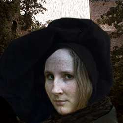 Podle chování cizinka. Část jejího vybavení napovídá původ v teplejším podnebí, část je naopak vhodná do velmi chladného. Přátelská ke všem, kdo s ní chtějí mluvit - a viditelně spokojenější ve skupině než sama. V běžné mluvě občas používá slova z neznámé, libozvučné řeči. Říká o sobě, že je vědma. Ožije, pokud se hovor stočí na magii, duchy a Únik - zdá se ale, že se její znalosti rozchází s učením Kruhu. Nepůsobí jako někdo, kdo má za sebou mnoho bojových zkušeností, nebo je zvyklý na vojenskou disciplínu.