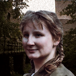 Mladá trpaslice, která si žárlivě střeží svoji minulost, svoje recepty a vařečkou přetáhne každého, kdo jí udělá v kuchyni nepořádek. Občas kulhá, občas si čte v malé knížečce a něco mumlá; občas vypadá, že je duchem jinde. Vždycky myslí hlavně na to, aby to v kuchyni klapalo, brambory byly oškrábané a voda se vařila. Málokdy se toulá po tvrzi - má pořád plné ruce práce. Nemusí říkat, co si o věcech myslí, její obličej je dost hlasitý sám o sobě. Ale stejně to nakonec každému řekne. Ráda a hlasitě se směje, je přátelská - ale jakmile padne noc, jde si umíchat dryák, bez kterého nechodí spát. A hodně si dává pozor na to, kde je a kdo je kolem ní.